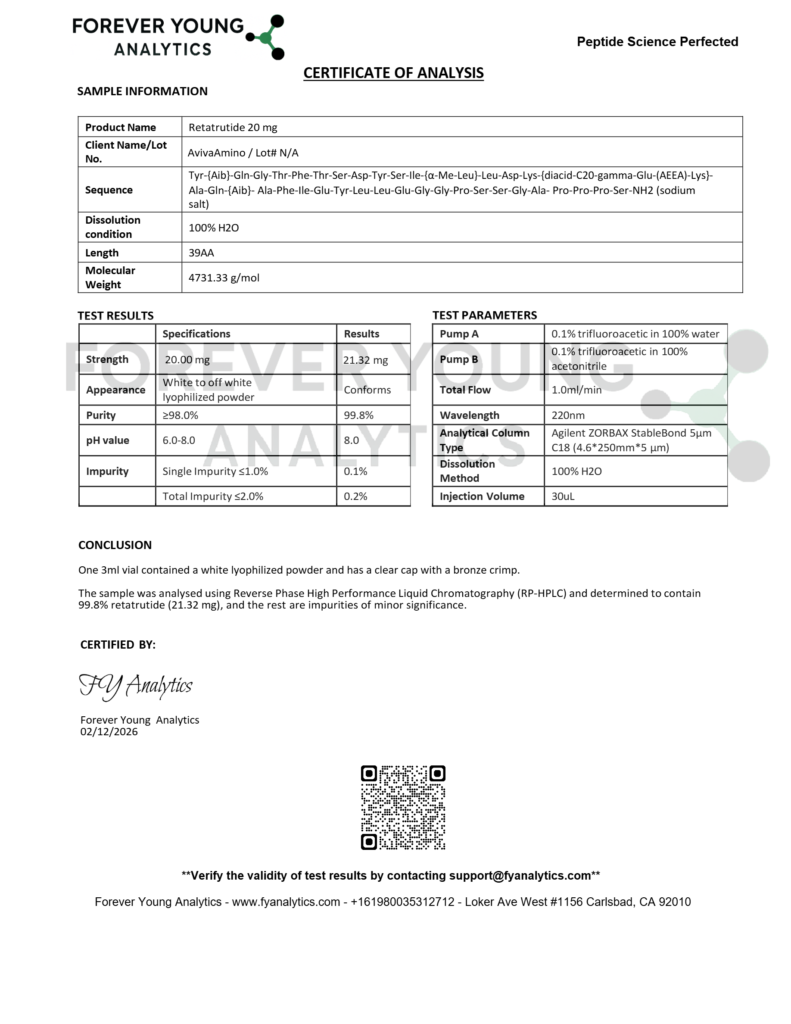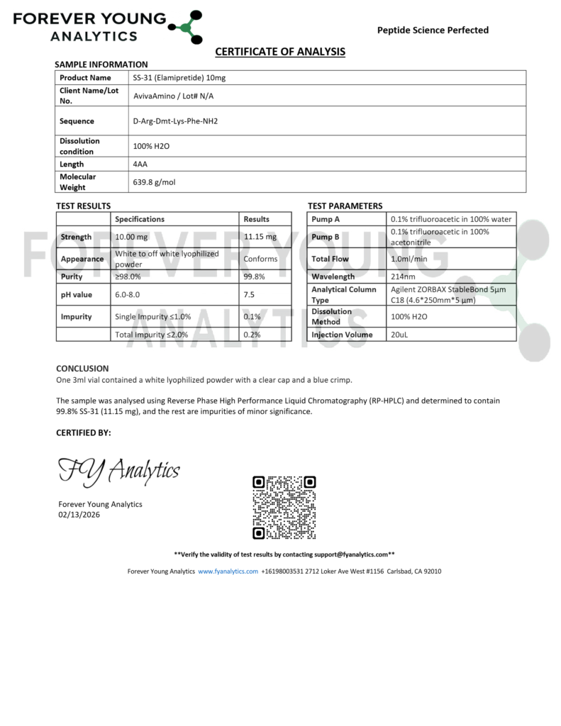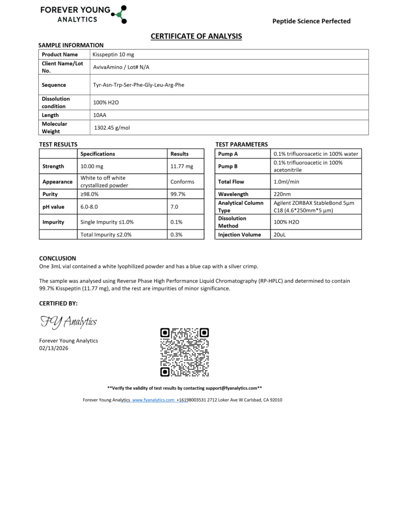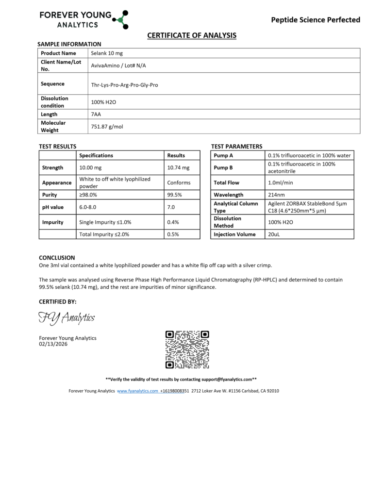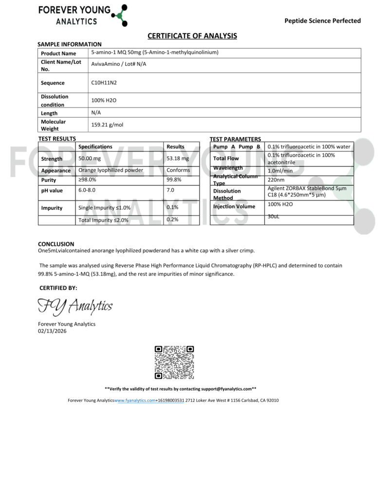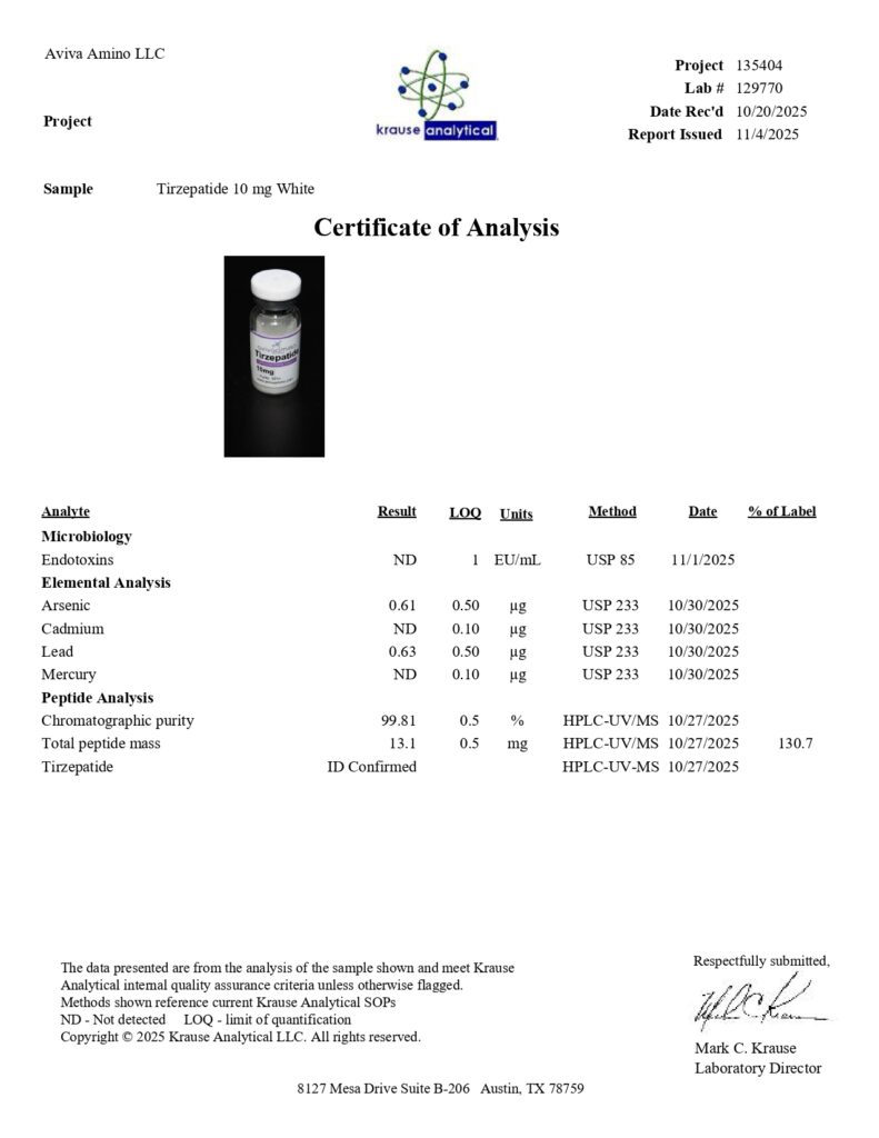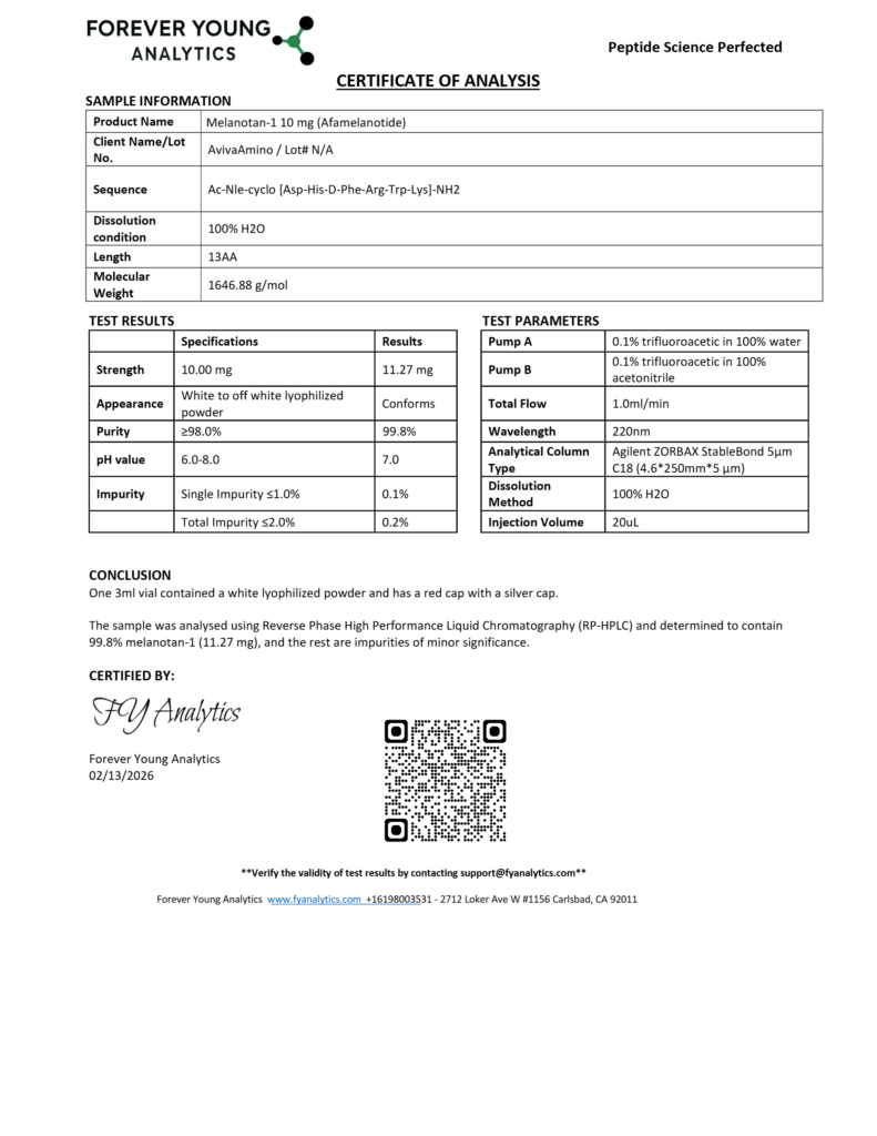 AVIVA AMINO is a chemical supplier, and is not a compounding pharmacy or chemical compounding facility as defined under 503A of the Federal Food, Drug, and Cosmetic act. AVIVA AMINO is not an outsourcing facility as defined under 503B of the Federal Food, Drug, and Cosmetic act.